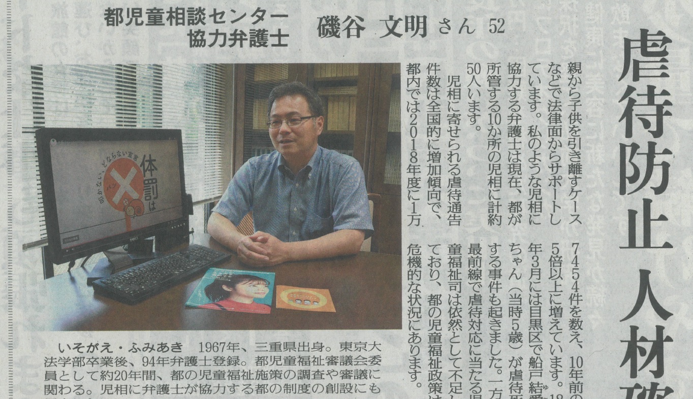 都知事選挙に向けて、読売新聞が都政を振り返る特集を行いましたが、そのなかの児童福祉に関する部分について、くれたけ法律事務所の磯谷文明弁護士がインタビューに応じ、その記事が掲載されました(2020年7月1日付都民版。記事は、こちら)。
